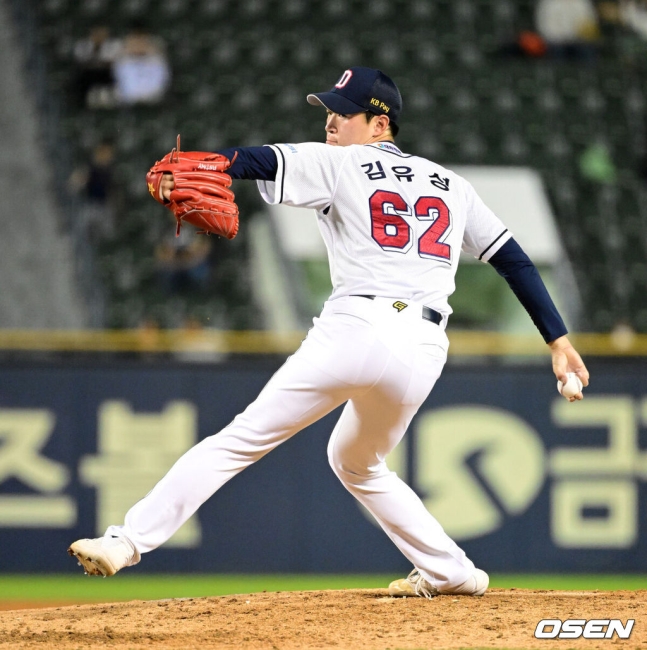 김유성은 5회에도 상대 타자들을 삼자범퇴시키며 안정적인 피칭을 보여주었습니다. 권동진을 삼진으로 처리하고, 추재현과 천성호를 각각 2루수 땅볼로 묶어내며 이닝을 마무리했습니다. 6회에는 허인서를 7구째 삼진으로 잡고, 구본혁을 접전 끝에 헛스윙 삼진으로 처리하였습니다.